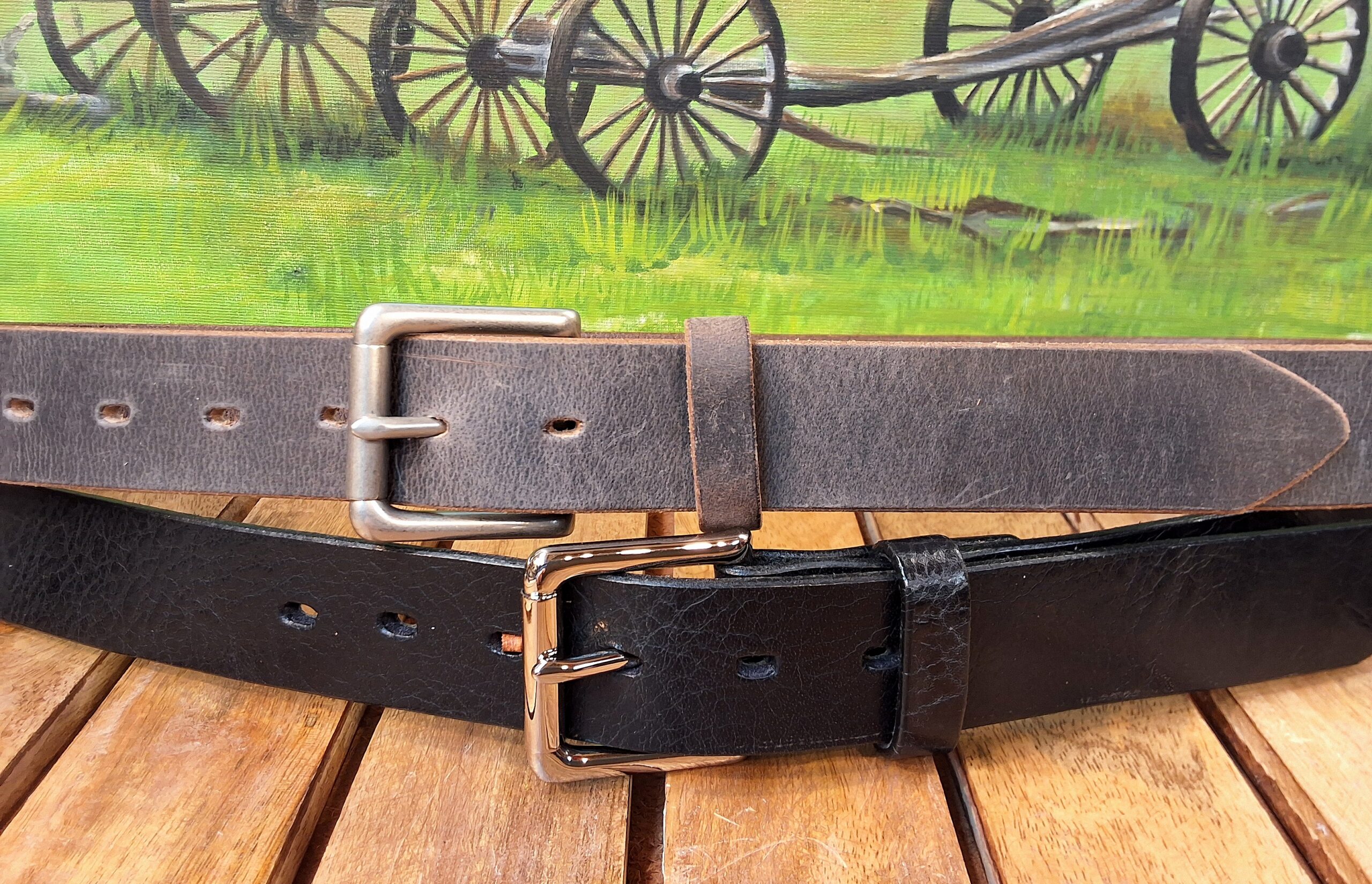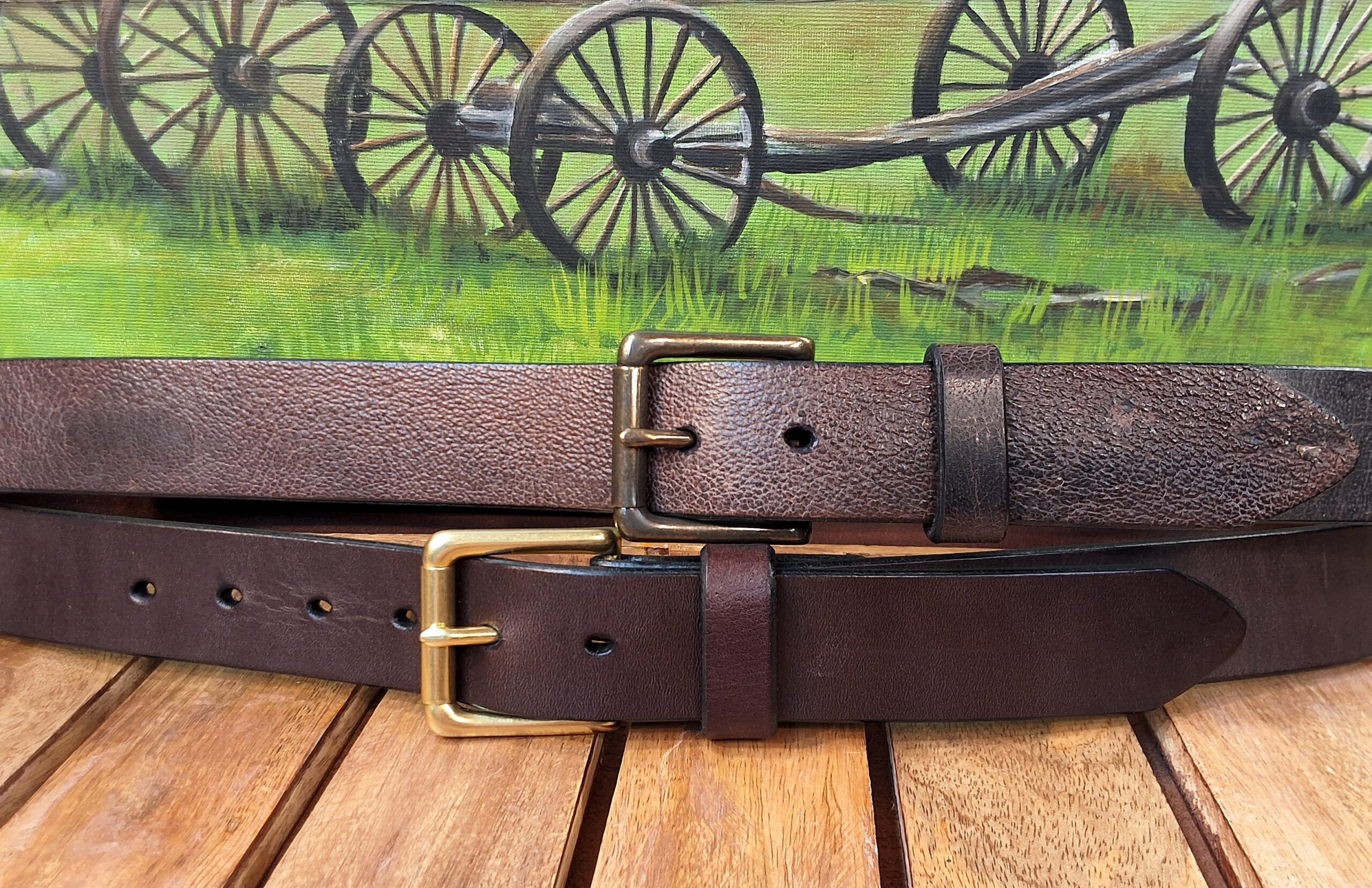 Our Artisan Handcrafted Patriot Colonial Roller Bar Leather Belt is a fine quality, locally handmade, casual leather jean belt in up to 1-1/2″ belt width.